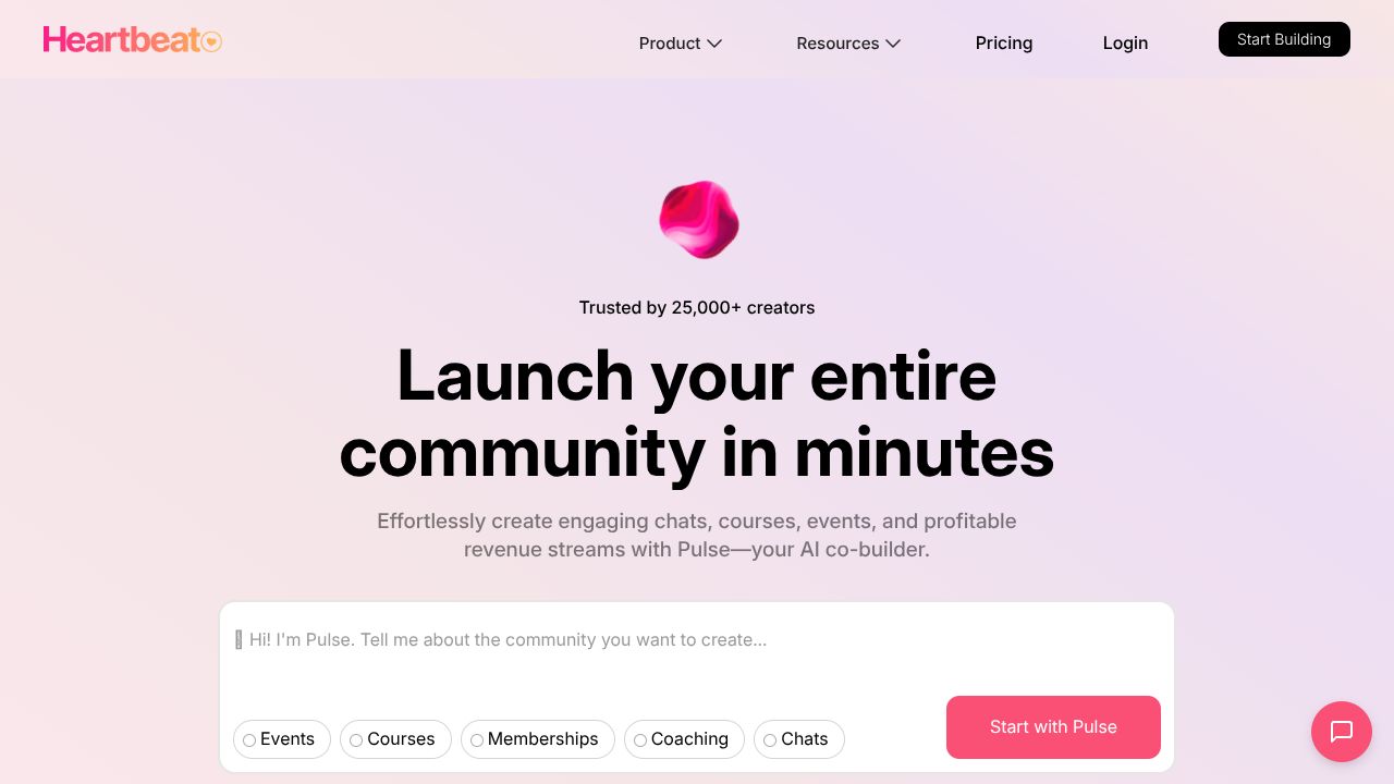 Heartbeat is a cost-effective community platform with AI matchups for peer pairing and custom branding, excelling in ease-of-use for creators starting scalable groups.